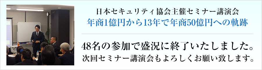現在における警備業の現状を考えてみると、中小企業が多く見受けられます。しかし、この中小企業の横のつながりを作るような組織が存在しないことに疑問を感じ今回「一般社団法人日本セキュリティ協会」を設立しました。